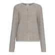 En tidløs og behagelig cardigan fremstillet i 100% økologisk bomuld. Designet har et klassisk, stribet ribmønster, der giver struktur og et elegant udtryk. De gyldne knapper foran tilføjer et feminint touch, mens den runde hals og lige pasform gør cardiganen nem at style både til hverdag og arbejde.