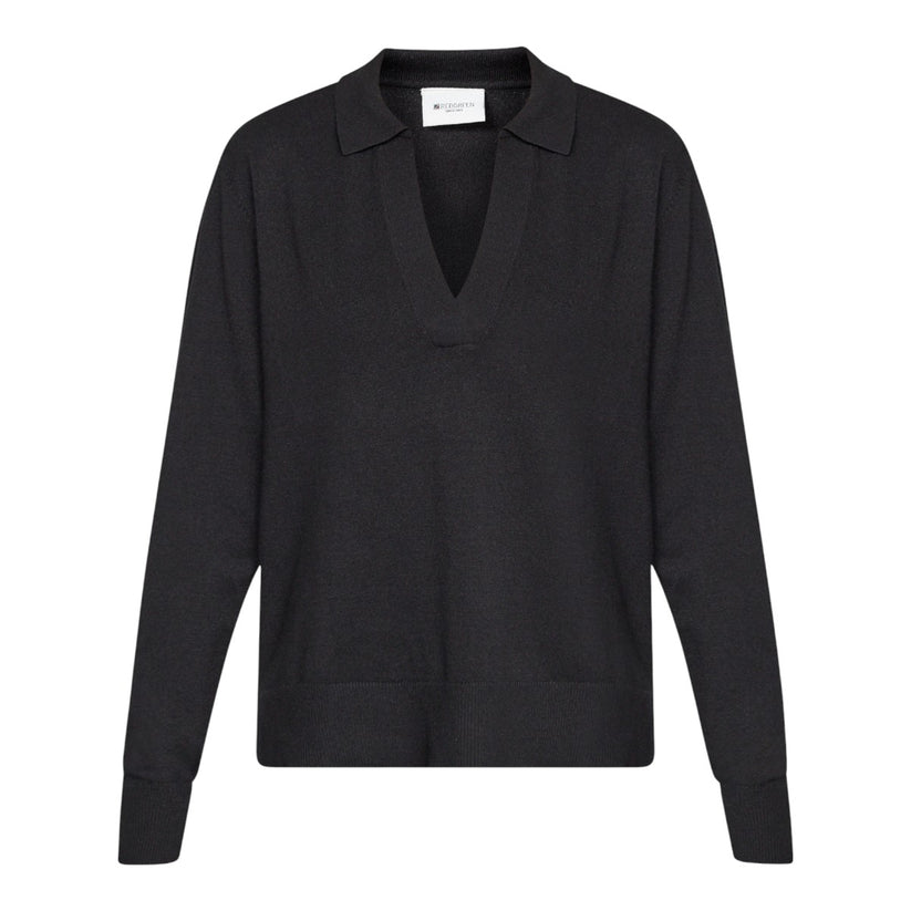 Det klassiske design fremhæves af en dyb V-udskæring med polokrave, lange ærmer og en enkel, tidløs silhuet. Perfekt til at kombinere med jeans for et afslappet look eller med elegante bukser for en mere sofistikeret stil.
