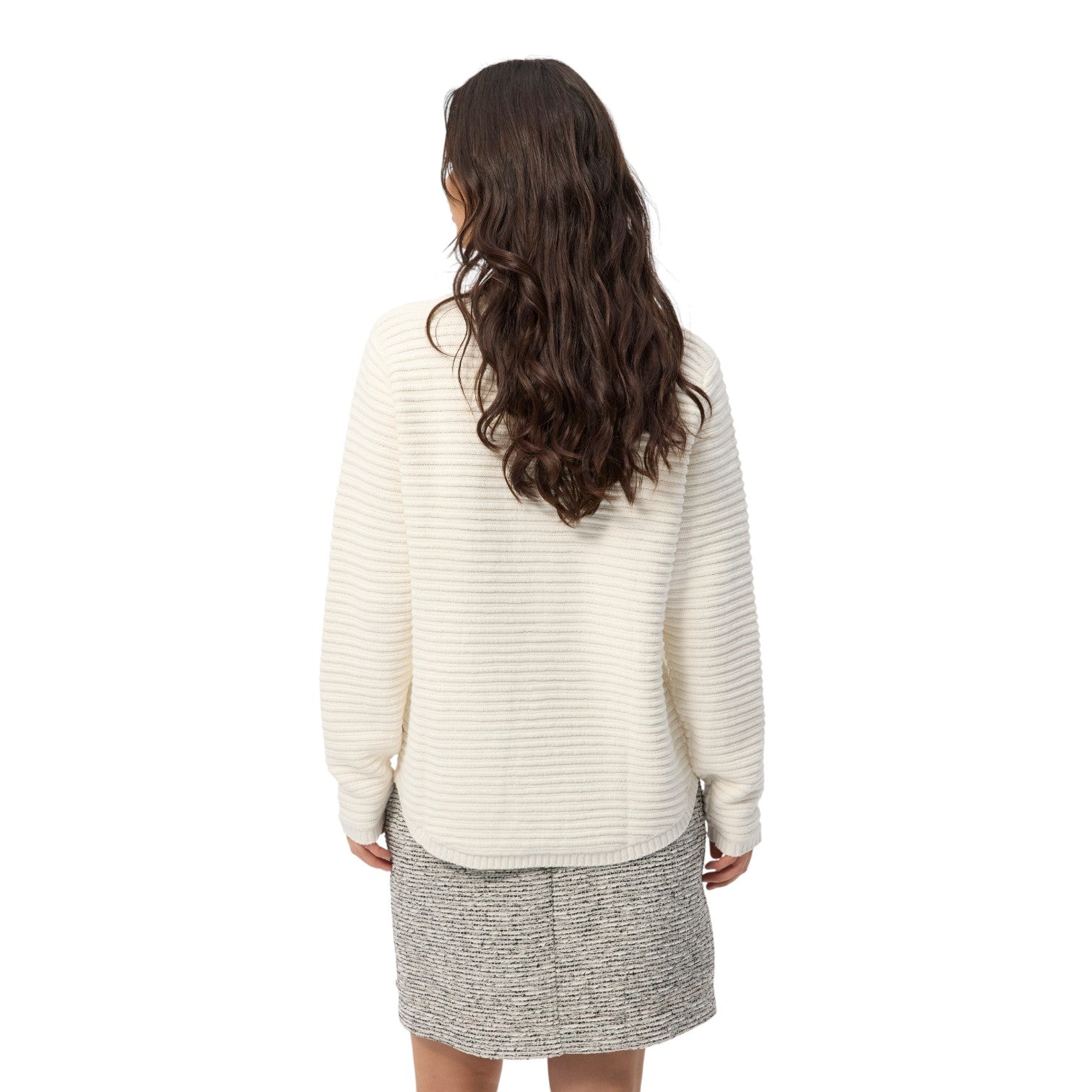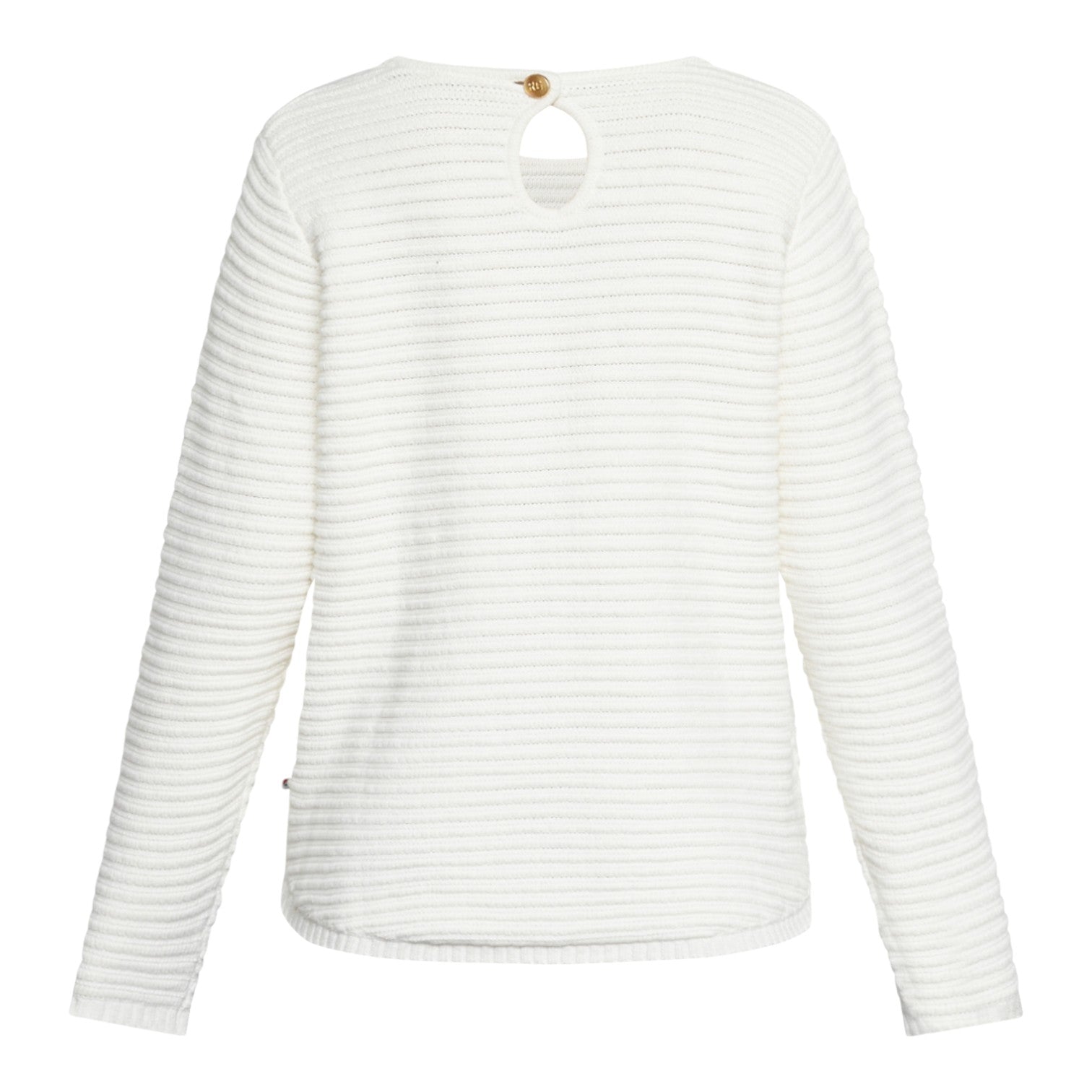 Smuk og klassisk striktrøje fremstillet i økologisk bomuldsgarn med en elegant stribet struktur. Sweateren har en afrundet bund og en fin detalje bagpå med nøglehul og logo-knap, der giver et feminint udtryk. Perfekt til både hverdag og afslappede lejligheder.