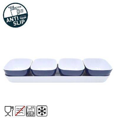- Beskrivelse: 5 dele (4 skåle & 1 bakke)