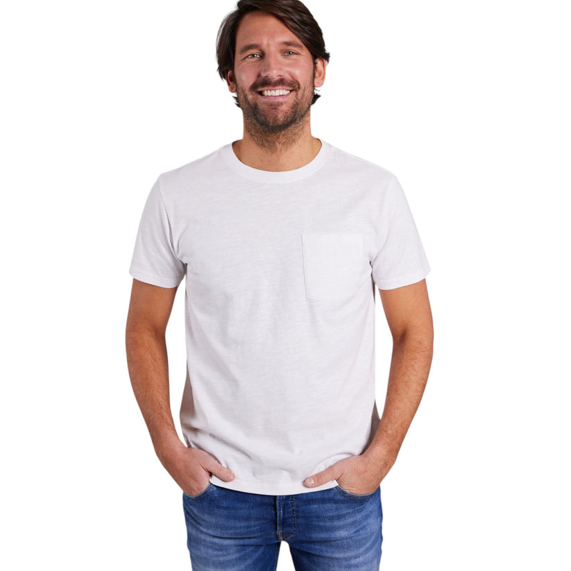 Den dekorative lomme på venstre bryst tilføjer et subtilt designelement, der gør T-shirten både praktisk og moderne.