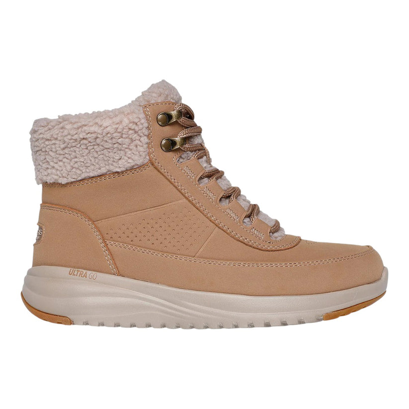 Oplev klassisk outdoor-stil kombineret med premium komfort i Skechers On-the-GO Stellar – Alpine Adventure. Denne vandtætte vandrestøvle er designet til at holde fødderne varme og tørre på kølige dage og giver samtidig den velkendte Skechers komfort. Overdelen er i nubucklæder og syntetisk materiale med bløde detaljer i kunstigt fåreskind, som tilføjer både varme og et hyggeligt udtryk.