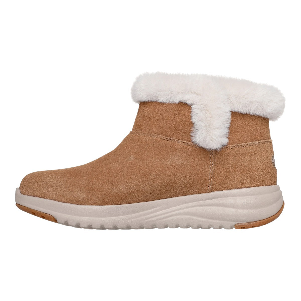 Støvlen har en blød ruskindsoverdel med pelskant og foring, der giver et hyggeligt look og følelse. Takket være Skechers Hands Free Slip-ins® teknologien kan du nemt træde i støvlen uden brug af hænder, mens den integrerede Heel Pillow® holder foden sikkert på plads.