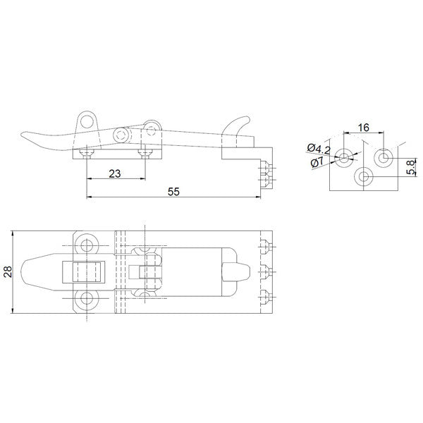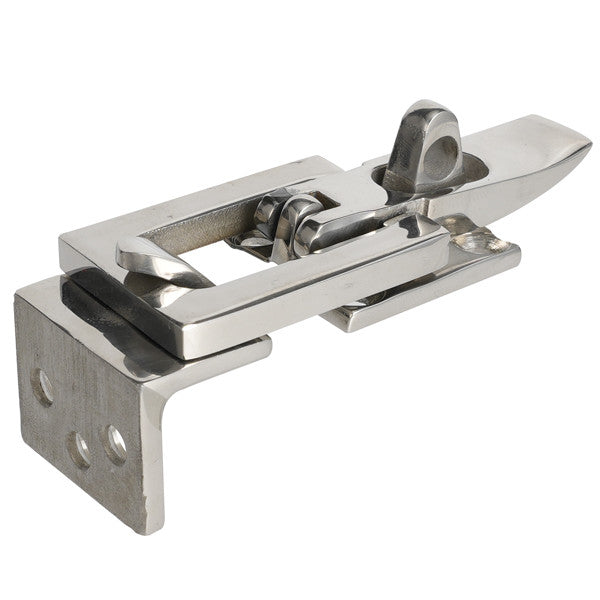 Spændeoverfald med vinkel låsebeslag i rustfrit stål AISI 316. Fås i 2 størrelser.