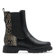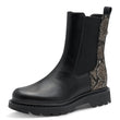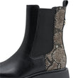 Disse moderne chelsea boots kombinerer klassisk elegance med et råt twist. Den sorte læderlook-overdel giver støvlen et tidløst udtryk, mens den bageste del med snakeprint tilfører et iøjnefaldende og trendy element. De elastiske paneler i siden gør støvlerne nemme at trække på og sikrer en fleksibel pasform.