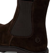 Elegant og robust Chelsea-støvle i mørkebrunt ruskind, der kombinerer klassisk design med moderne funktionalitet. Støvlen har et tidløst look med elastiske sidepaneler, der gør den nem at tage af og på, samt en praktisk strop bagpå. Den kraftige, profilerede ydersål giver et godt greb, mens den bløde indersål og polstrede foring sikrer høj komfort hele dagen.