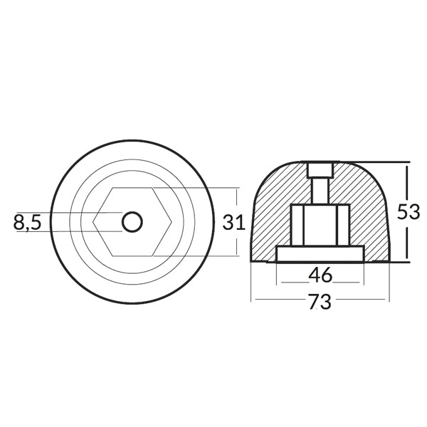 - SKU 1145086: Brand: Tecnoseal Højde: 53,0 mm Original nr.: 501180 Vægt: 1,06 kg Ø: 73,0 mm Ø1: 46 mm Ø2: 8,5 mm