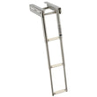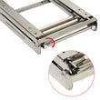 Fremstillet af rustfrit stål og ovale trin med skridsikker hvid plastbelægning. Teleskopstigen kan foldes ind i kassetten som er udstyret med en faldsikker frontlås.