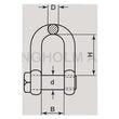 | Varenr. | Farve | Bolt (d) | Bøjle (D) | Indv. højde (H) | Indv. bredde (B) | S.W.L. |