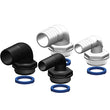 90º Vinklet slangekobling til TruDesigns Y-ventil, har 1 1/2 gevind og findes i forskellige størrelser og farver.