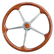 Rustfrit stål rat med lakeret teak træ. Leveres inkl. standard 3/4” nav.