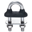316L rustfri stål, UV-bestandig gummikrave| 10 mm gods, bolt 65 mm, øje 26 mm| Funktionsbelastning 3600 kg - Brudstyrke 7000 kg| Wichard fremstiller traditionelle U-bolte, igen| kendetegnet ved høj styrke og kvalitet.| Ønsker du at slippe for at bruge tætningsmasse,| skal du vælge den patenterede version med| påsat gummi.